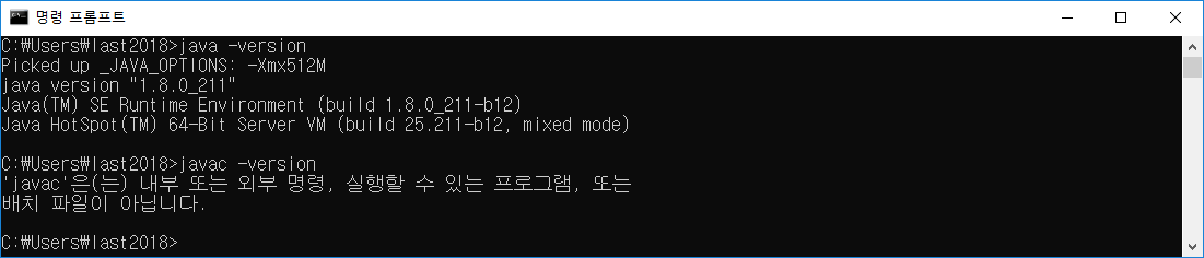 'javac'은(는) 내부 또는 외부 명령, 실행할 수 있는 프로그램, 또는 배치 파일이 아닙니다.
