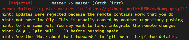 hint: See the 'Note about fast-forwards' in 'git push --help' for details.