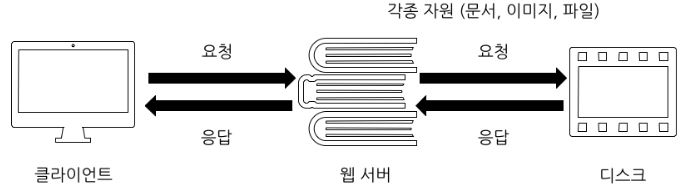일반적으로 사용자(Client)가 웹 페이지를 보려면 다음과 같은 구조, 과정을 거친다.