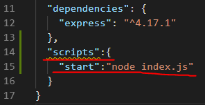 package.json파일의 dependency에 express가 설치된 것을 확인할 수 있다. dependency란 이 프로젝트가 실행되려면 필요한 것을 나타냄