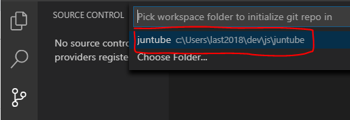 다음과 같은 창이 나타나는데 우측 상단의 버튼을 눌러주면 검색창 같은것이 상단에 나타나면서 깃 저장소를 초기화 할 폴더를 선택할 수 있다. 이 때 현재 폴더를 선택해주어 초기화를 진행한다.