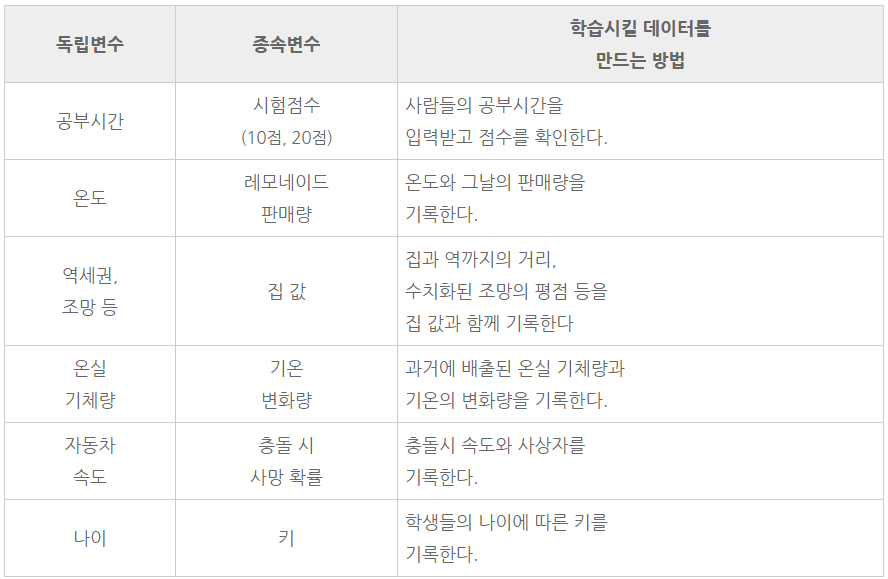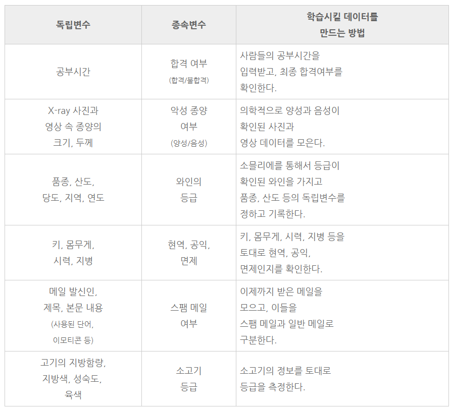 독립변수와 종속변수의 관계를 컴퓨터에게 학습시키면
